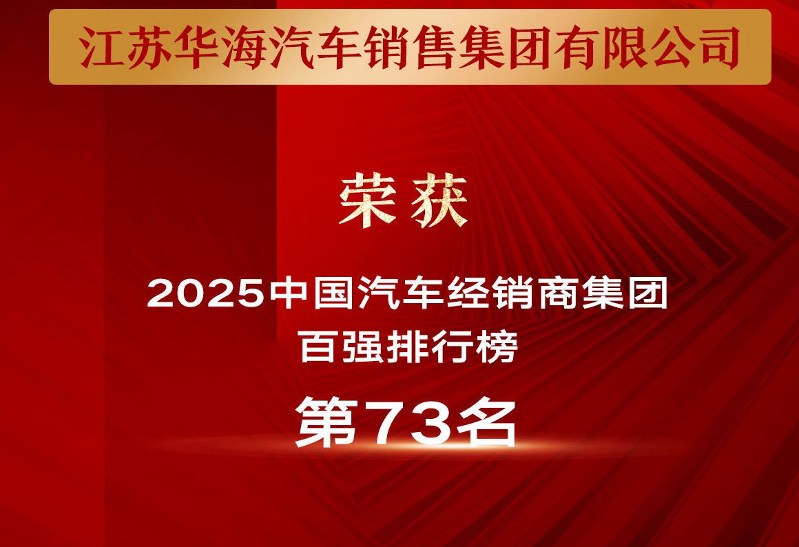 江蘇華海汽車集團榮登2025中國汽車經(jīng)銷商百強榜